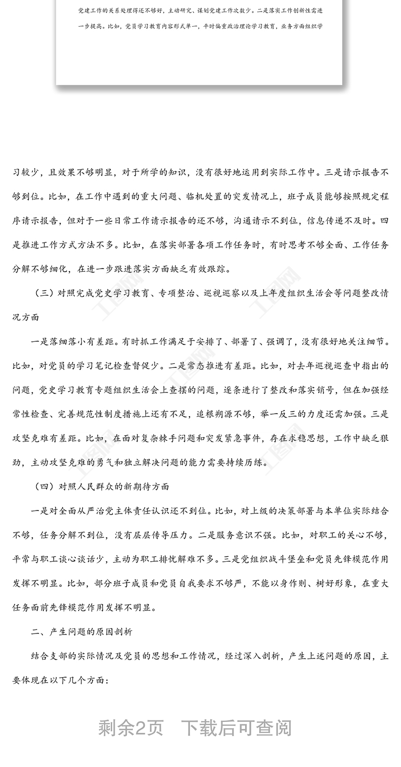 國企黨支部支委班子2021年度組織生活會對照檢查材料,國企黨支部支委班子2021年度組織生活會對照檢查材料 Array