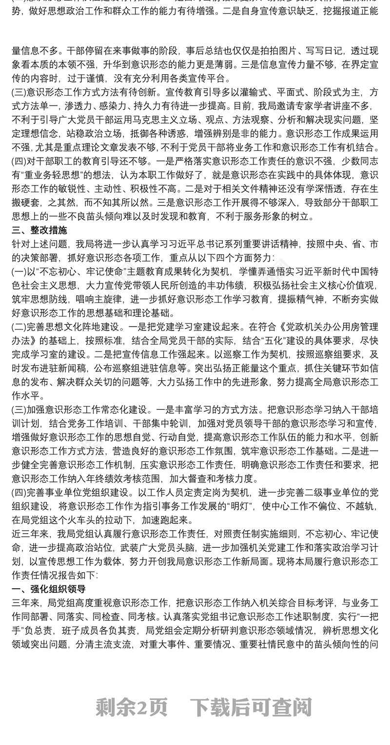 工圖網(wǎng)提供局黨組意識形態(tài)工作情況匯報材料及整改措施供會員免費下載。更多精彩黨課PPT素材,盡在工圖網(wǎng)。