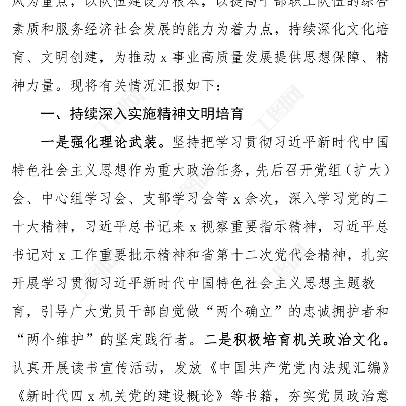 黨課講稿 > 機關單位2023年精神文明建設工作總結和2024年工作計劃PPT模板(講稿).DOCX