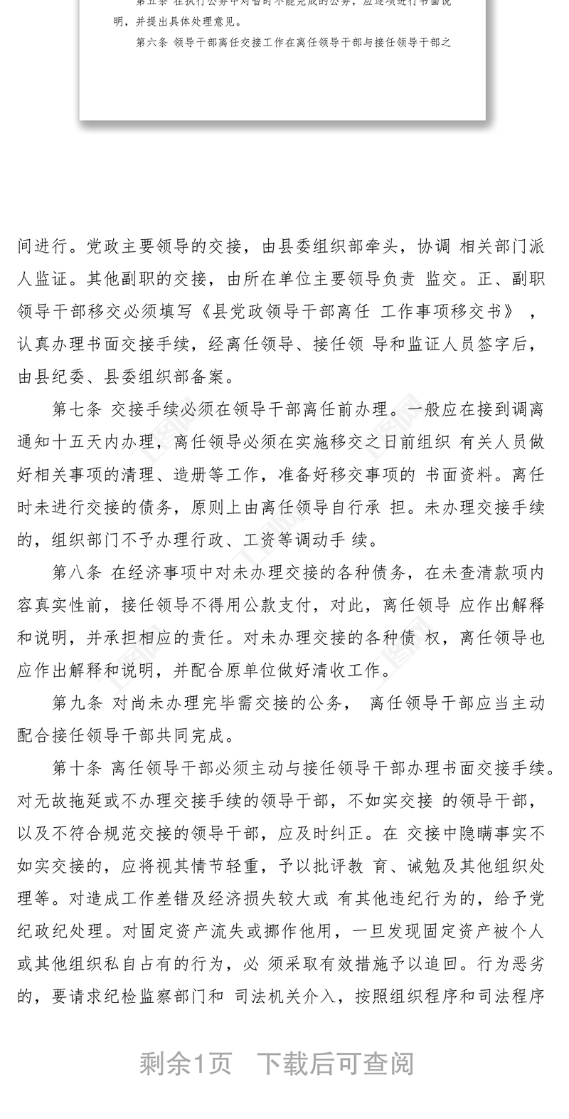 2021縣黨政領(lǐng)導(dǎo)離任工作交接制度