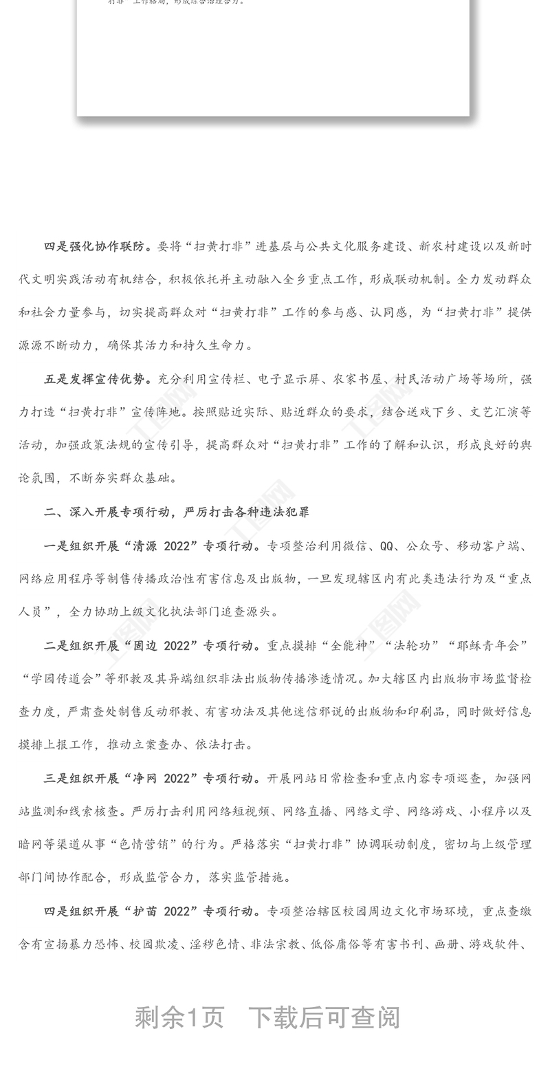 鎮(zhèn)2022年“掃黃打非”工作實(shí)施方案