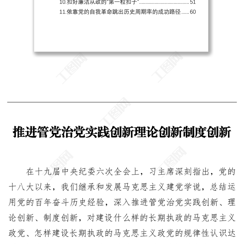 工圖網(wǎng)提供學(xué)習(xí)紀(jì)委全會(huì)精神心得體會(huì)、研討發(fā)言匯編(11篇)供會(huì)員免費(fèi)下載。更多精彩黨課PPT素材,盡在工圖網(wǎng)。