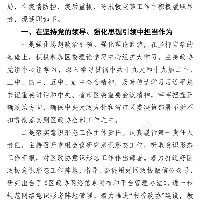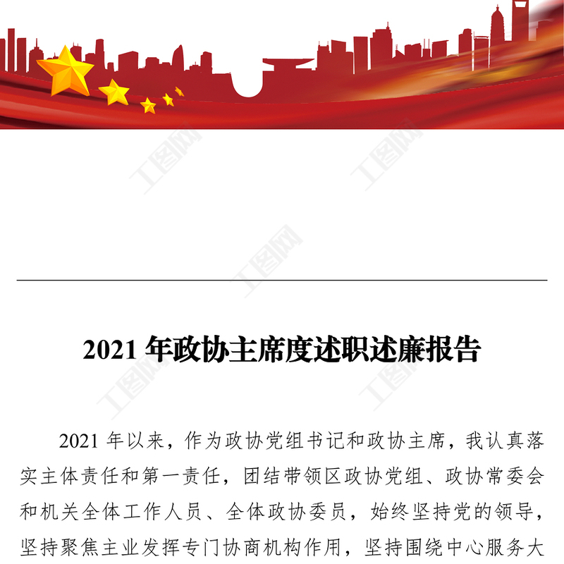 工圖網(wǎng)提供2021年政協(xié)主席度述職述廉報告供會員免費(fèi)下載。更多精彩黨課PPT素材,盡在工圖網(wǎng)。