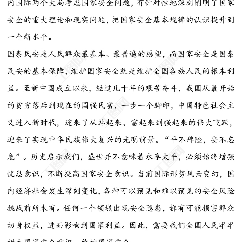工圖網(wǎng)提供學(xué)習(xí)國(guó)家總體國(guó)家安全觀交流發(fā)言材料供會(huì)員免費(fèi)下載。更多精彩黨課PPT素材,盡在工圖網(wǎng)。