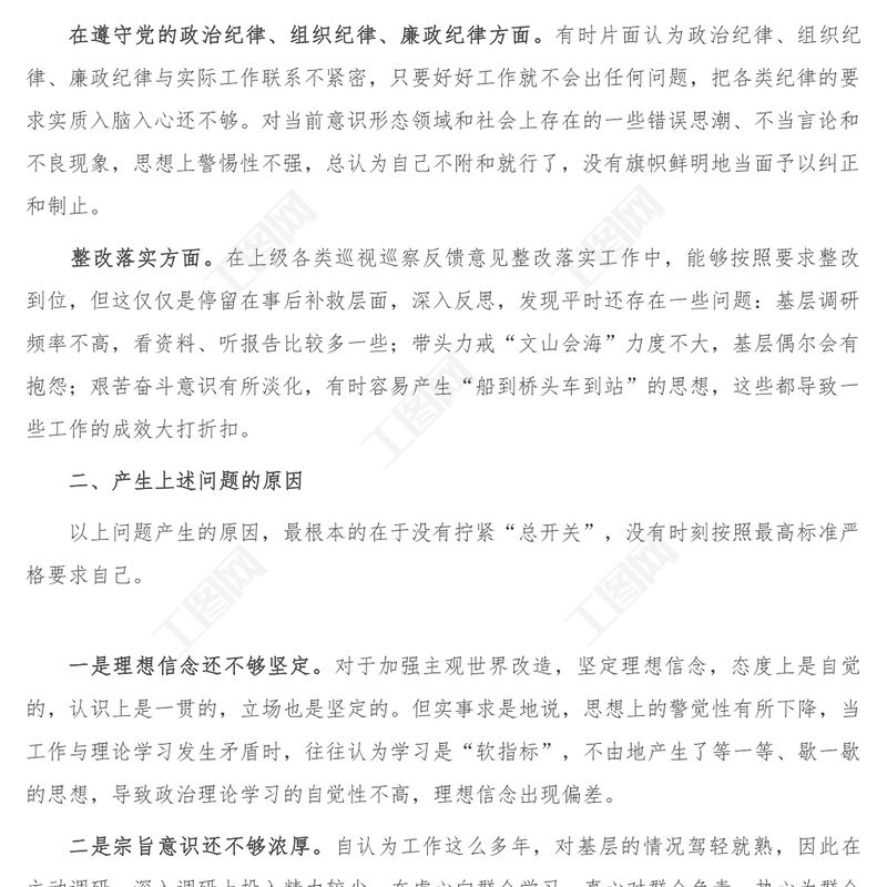 工圖網(wǎng)提供遵守黨紀(jì)黨規(guī) 爭(zhēng)做合格黨員專(zhuān)題民主生活會(huì)對(duì)照檢查材料供會(huì)員免費(fèi)下載。更多精彩黨課PPT素材,盡在工圖網(wǎng)。