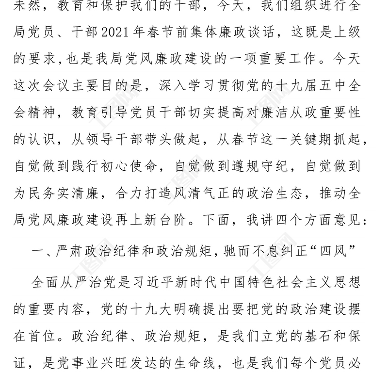 在2021年春節(jié)前集體廉政談話暨工作部署會議上的講話 Array
