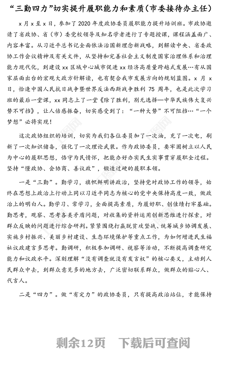 工圖網(wǎng)提供市政協(xié)委員2020年度履職能力提升培訓(xùn)班學(xué)習(xí)心得體會(huì)匯編(6篇)供會(huì)員免費(fèi)下載。更多精彩黨課PPT素材,盡在工圖網(wǎng)。