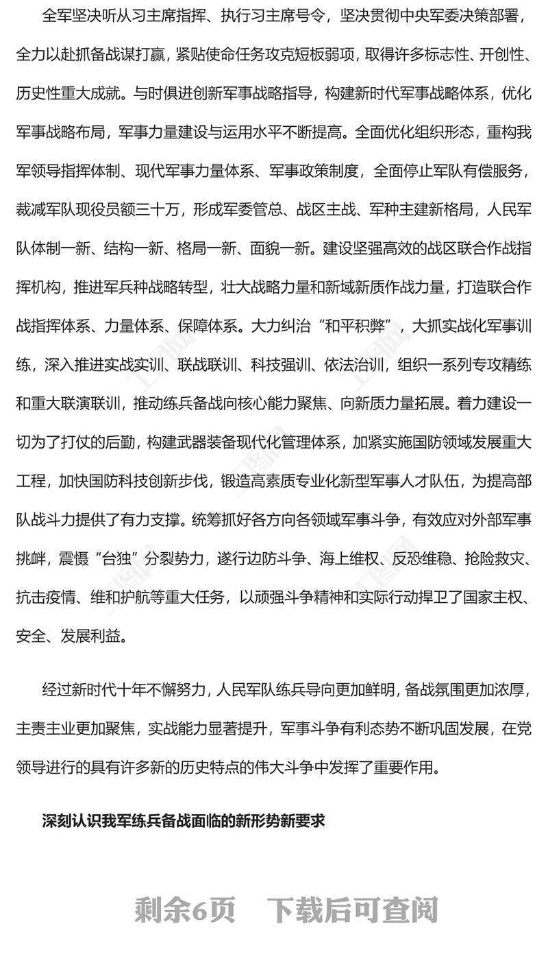 > 黨課講稿 > 2022全面加強練兵備戰(zhàn)PPT大氣黨建風(fēng)黨員干部學(xué)習(xí)教育專題黨課黨建課件(講稿).DOCX 【圖片、文字、動畫均可編輯】