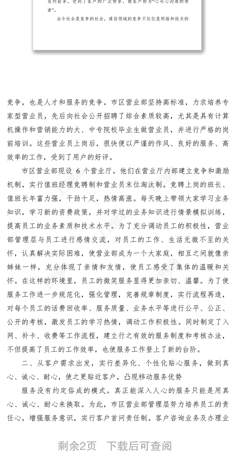 2021【先進事跡】移動通信分公司市區(qū)營業(yè)部省級青年文明號事跡材料