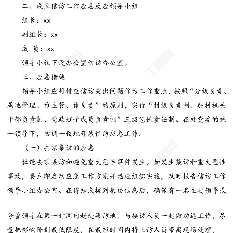 工圖網(wǎng)提供鄉(xiāng)鎮(zhèn)信訪應(yīng)急處置預(yù)案范文供會員免費下載。更多精彩黨課PPT素材,盡在工圖網(wǎng)。