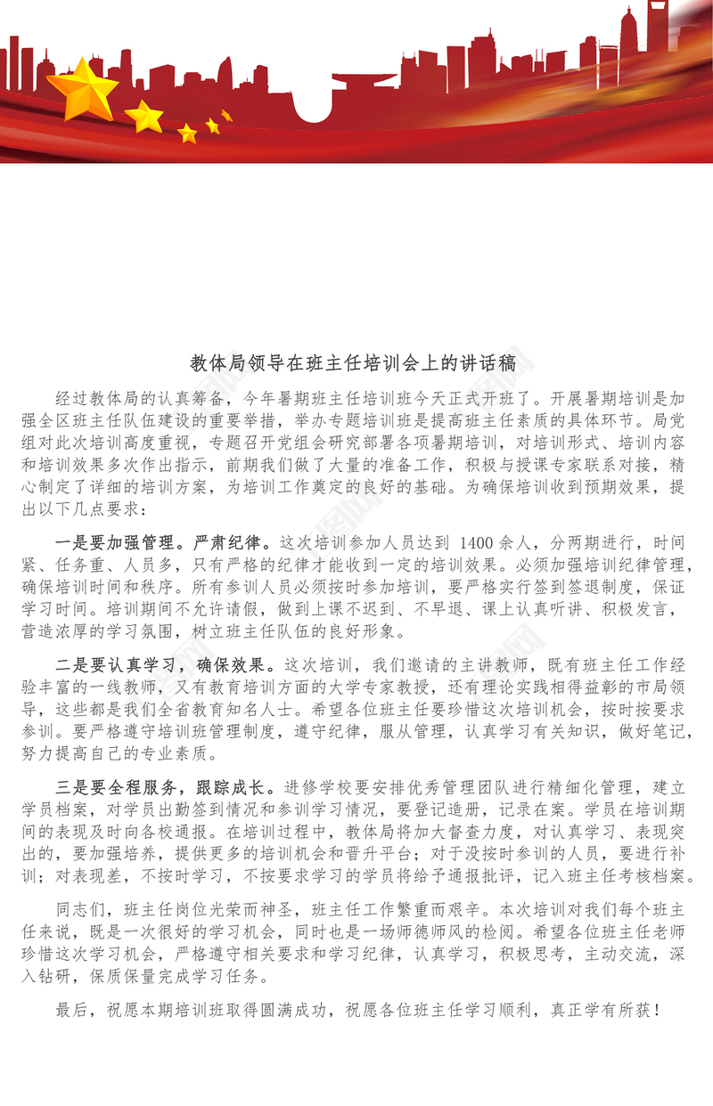教體局領(lǐng)導(dǎo)在班主任培訓(xùn)會上的講話稿 Array