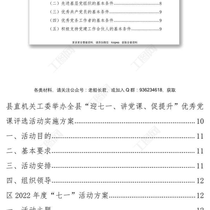 工圖網(wǎng)提供“七一”建黨節(jié)相關(guān)活動(dòng)方案匯編(7篇)供會(huì)員免費(fèi)下載。更多精彩黨課PPT素材,盡在工圖網(wǎng)。