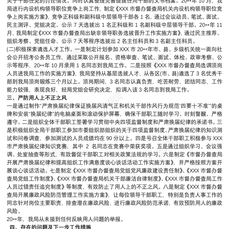 單位選人用人的自查報(bào)告