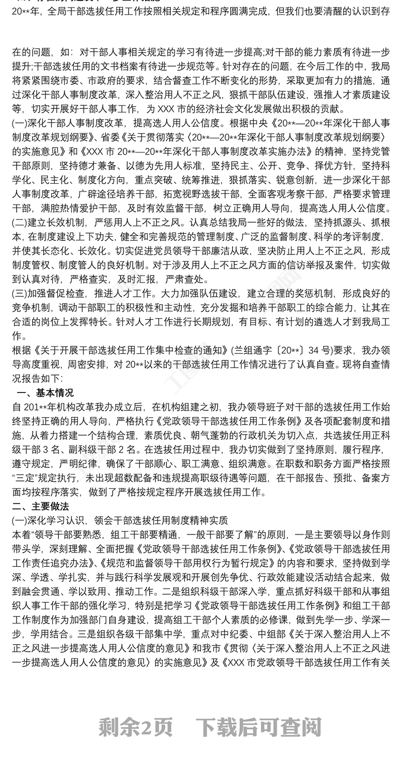 單位選人用人的自查報(bào)告 Array