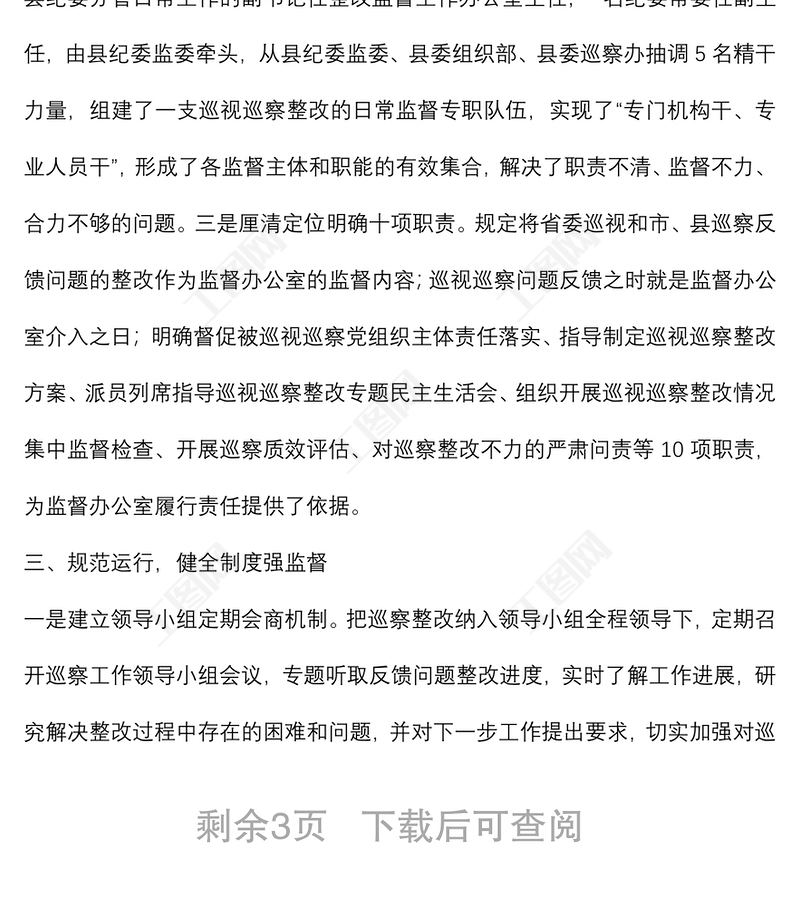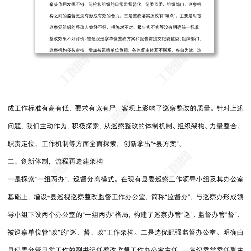 工圖網(wǎng)提供創(chuàng)新體制機(jī)制 壓實(shí)監(jiān)督責(zé)任 以整改監(jiān)督的高質(zhì)量實(shí)現(xiàn)巡察工作的高質(zhì)量——市委巡察工作高質(zhì)量發(fā)展推進(jìn)會(huì)經(jīng)驗(yàn)交流材料供會(huì)員免費(fèi)下載。更多精彩黨課PPT素材,盡在工圖網(wǎng)。