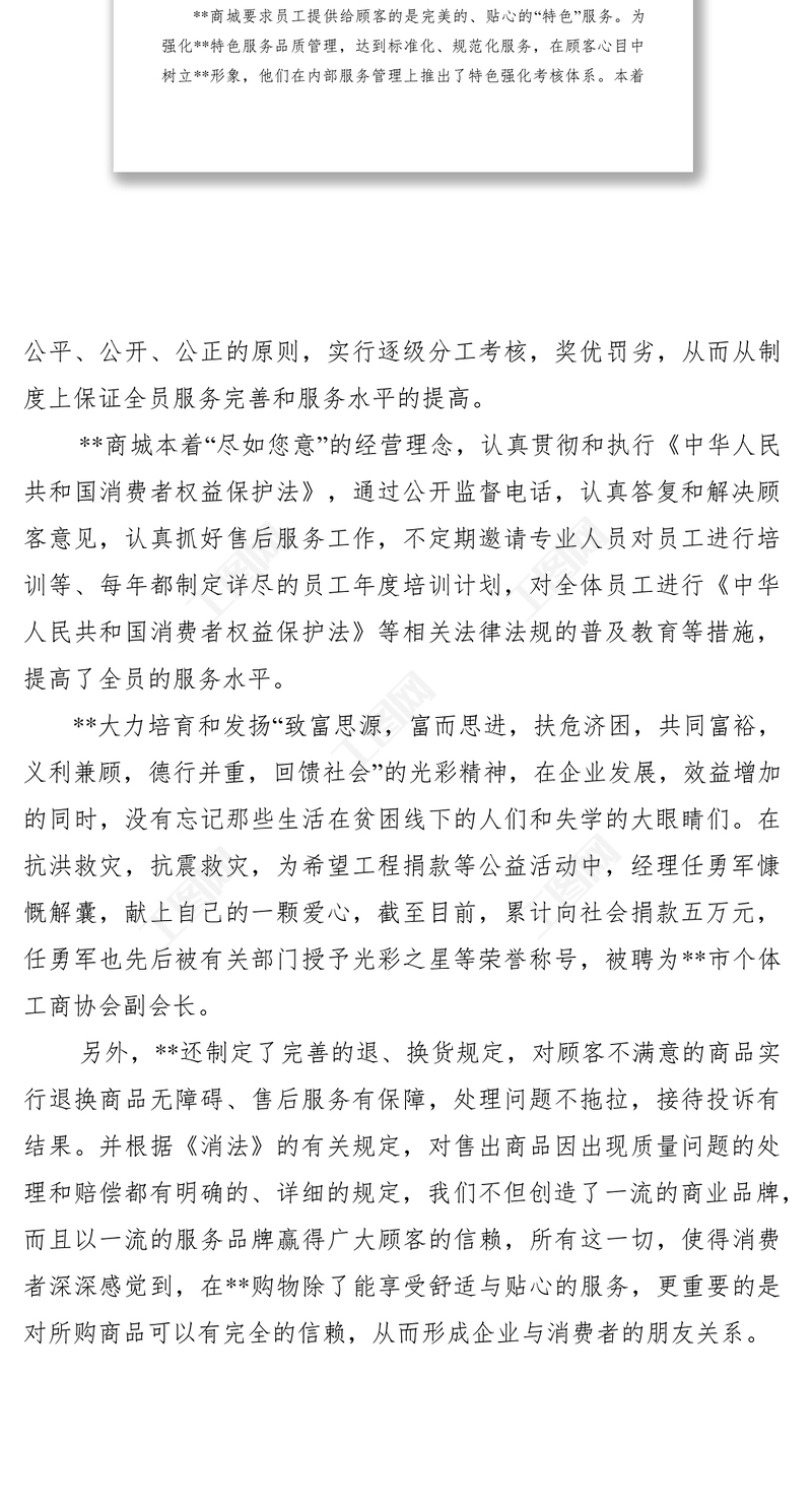 2021誠實(shí)守信模范先進(jìn)事跡――商城總經(jīng)理