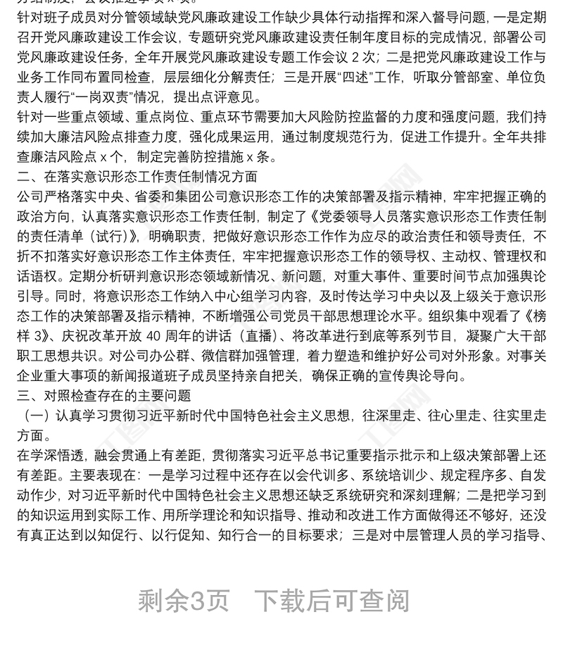工圖網(wǎng)提供集團 公司民主生活會班子對照檢查材料(整改落實情況+問題+分析+措施)供會員免費下載。更多精彩黨課PPT素材,盡在工圖網(wǎng)。