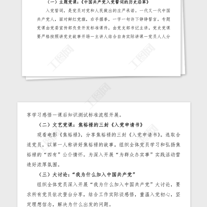 工圖網(wǎng)提供黨史黨日活動(dòng)方案主題黨日活動(dòng)方案回憶入黨故事重溫入黨誓詞公開(kāi)承諾踐諾黨史學(xué)習(xí)教育素材供會(huì)員免費(fèi)下載。更多精彩黨課PPT素材,盡在工圖網(wǎng)。