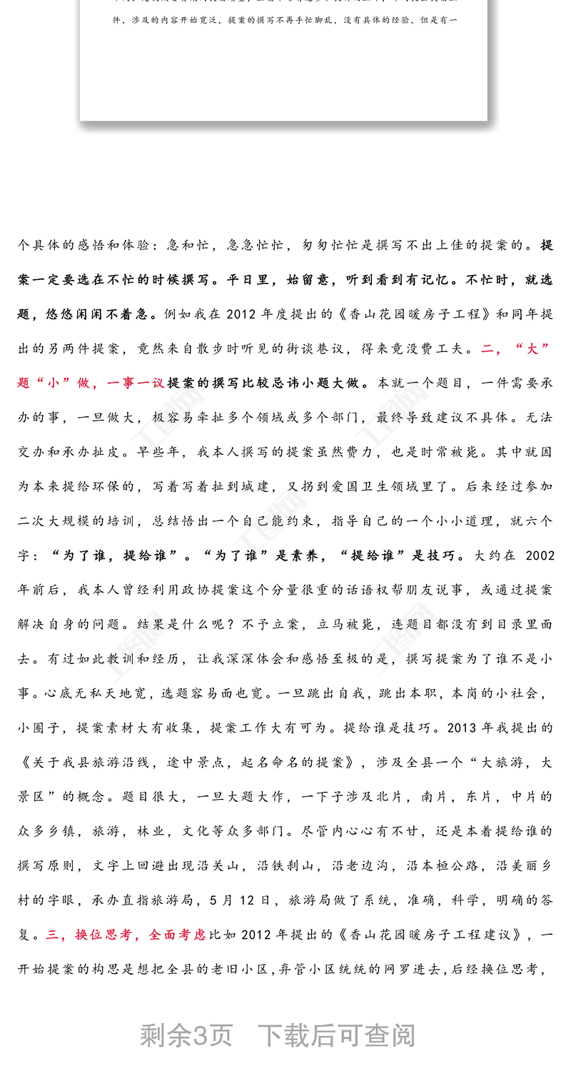 首頁 > WORD文檔 > 公文范文 > 調(diào)查研究是前提,撰寫技巧是根本——撰寫提案過程中的幾點心得和體會.DOCX 【圖片、文字、動畫均可編輯】