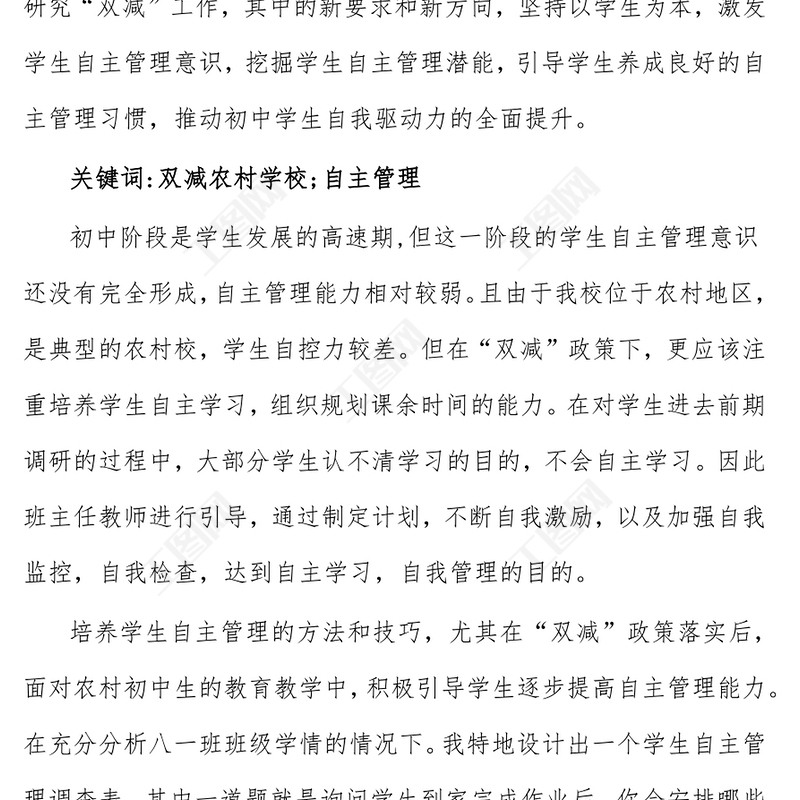 工圖網(wǎng)提供“雙減”背景下農(nóng)村學(xué)生自主管理能力培養(yǎng)的策略探究供會(huì)員免費(fèi)下載。更多精彩黨課PPT素材,盡在工圖網(wǎng)。
