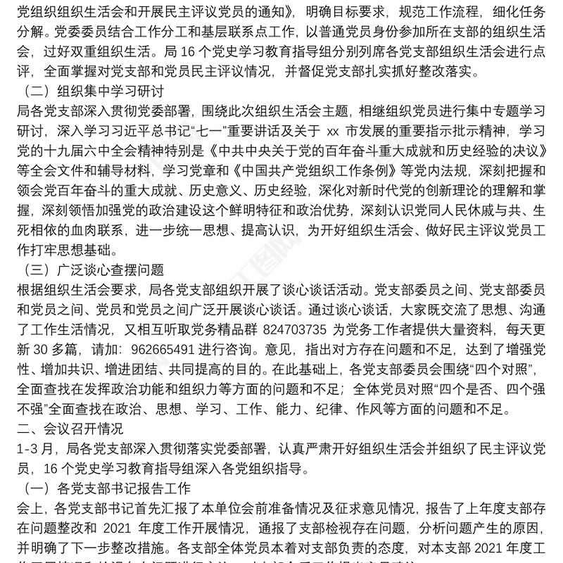 2021年組織生活會(huì)和開展民主評(píng)議黨員情況報(bào)告