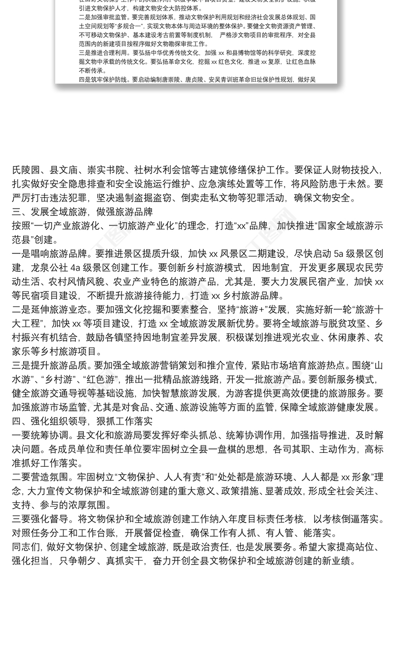 在全縣文物保護暨全域旅游創(chuàng)建大會上的講話