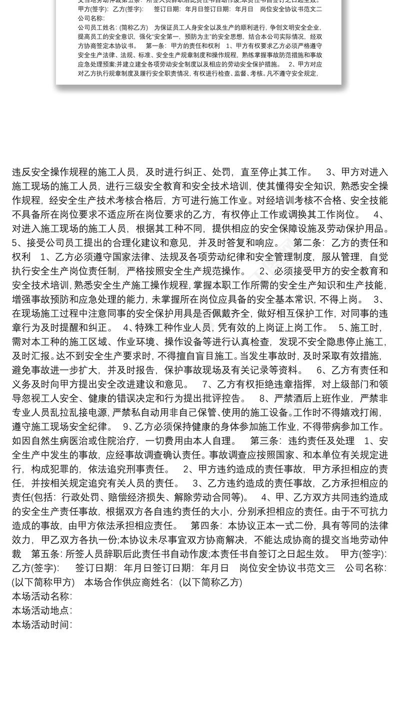 工圖網(wǎng)提供崗位安全協(xié)議書3篇供會員免費下載。更多精彩黨課PPT素材,盡在工圖網(wǎng)。