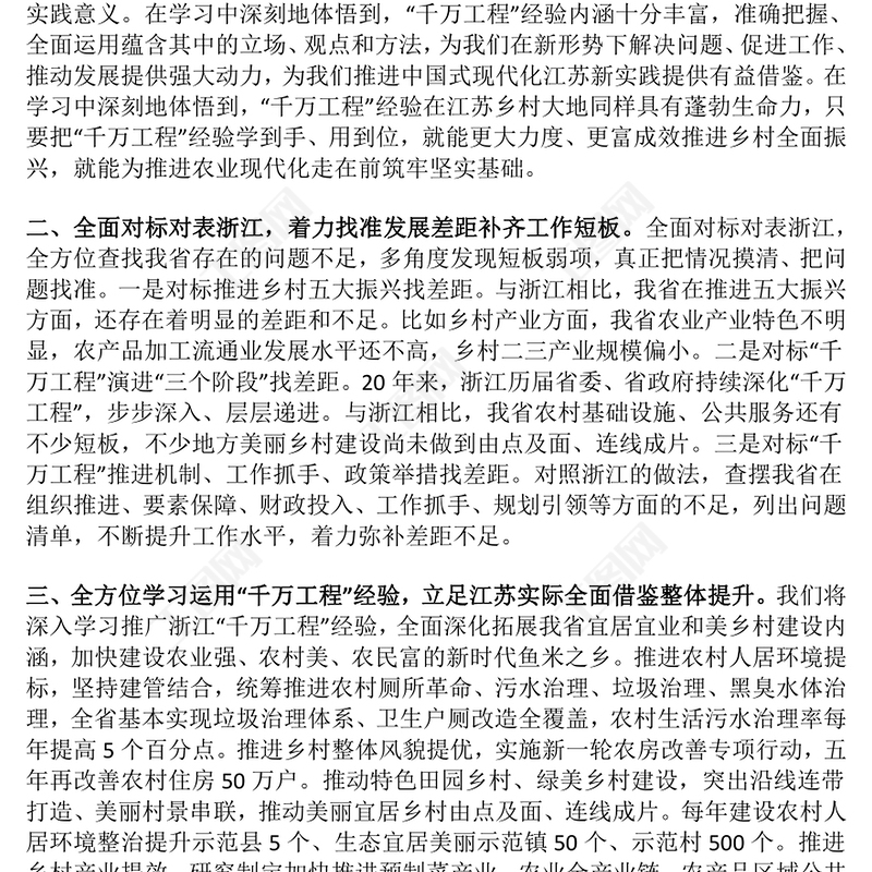 學深悟透“千萬工程”經(jīng)驗 加快建設新時代魚米之鄉(xiāng)——主題教育(千萬工程專題)研討交流發(fā)言稿 Array