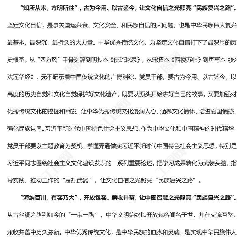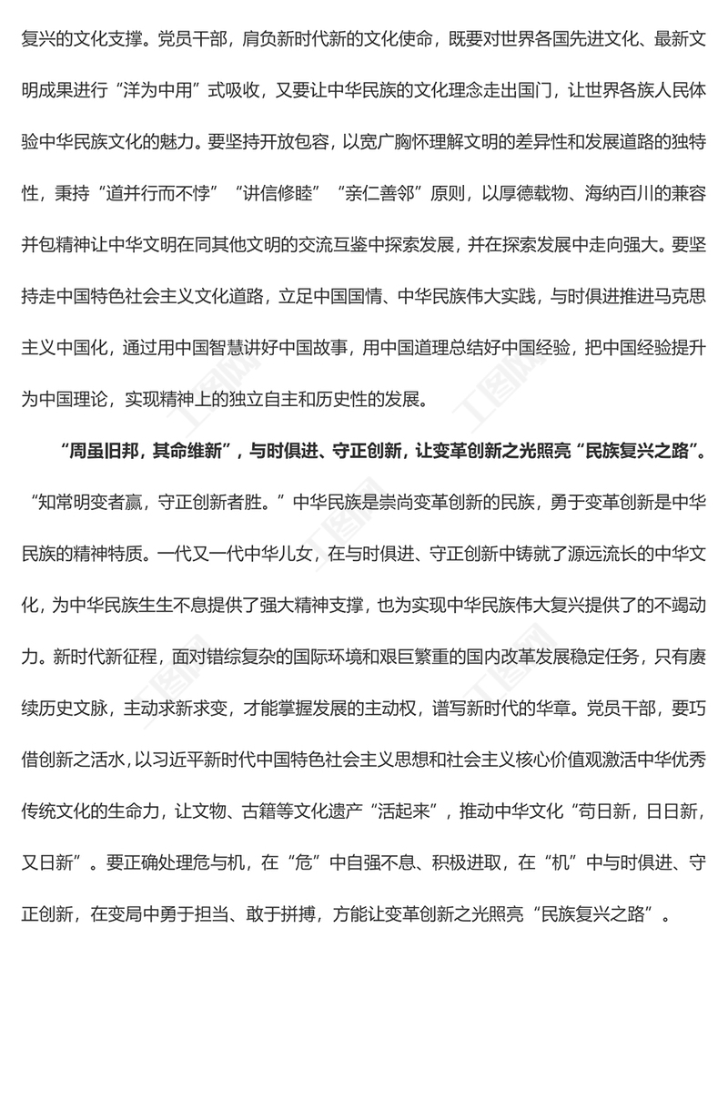 工圖網(wǎng)提供讓“文化使命之光”照亮“民族復(fù)興之路”(學(xué)習(xí)心得)供會(huì)員免費(fèi)下載。更多精彩黨課PPT素材,盡在工圖網(wǎng)。