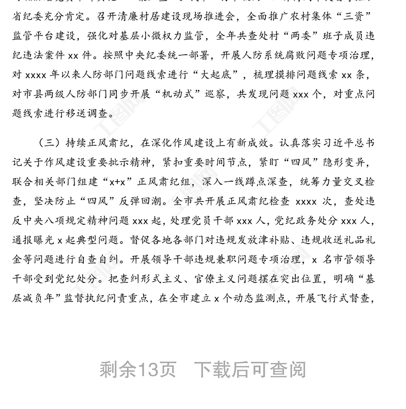 工圖網(wǎng)提供紀(jì)委監(jiān)委紀(jì)檢監(jiān)察工作總結(jié)及工作計劃(市級)供會員免費下載。更多精彩黨課PPT素材,盡在工圖網(wǎng)。