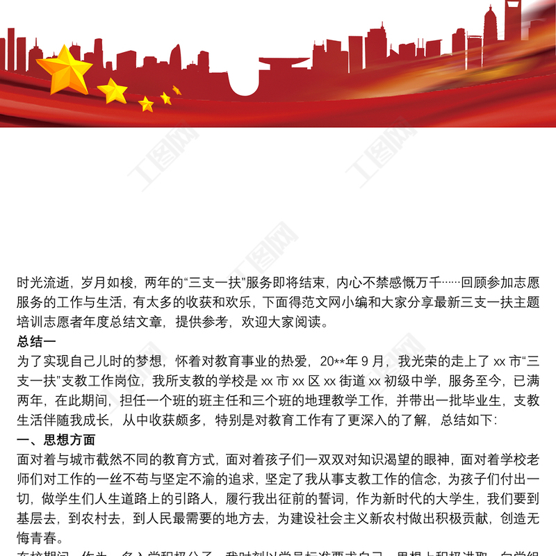 工圖網(wǎng)提供最新三支一扶主題培訓(xùn)志愿者年度總結(jié)供會員免費(fèi)下載。更多精彩黨課PPT素材,盡在工圖網(wǎng)。