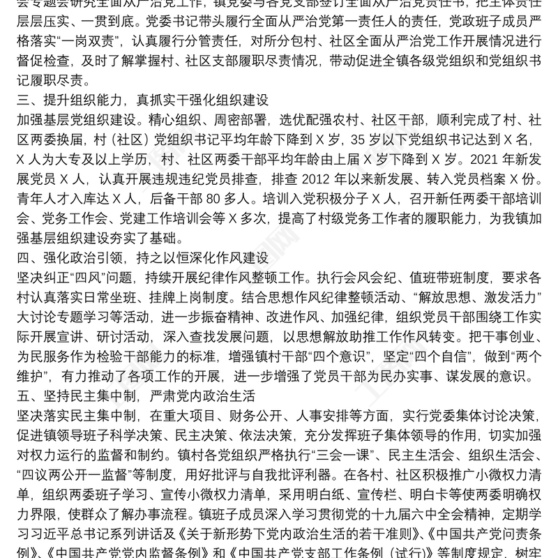 鄉(xiāng)鎮(zhèn)黨委領(lǐng)導(dǎo)班子2021年度落實(shí)全面從嚴(yán)治黨主體責(zé)任和黨風(fēng)廉政建設(shè)責(zé)任制情況述責(zé)述廉報(bào)告 Array
