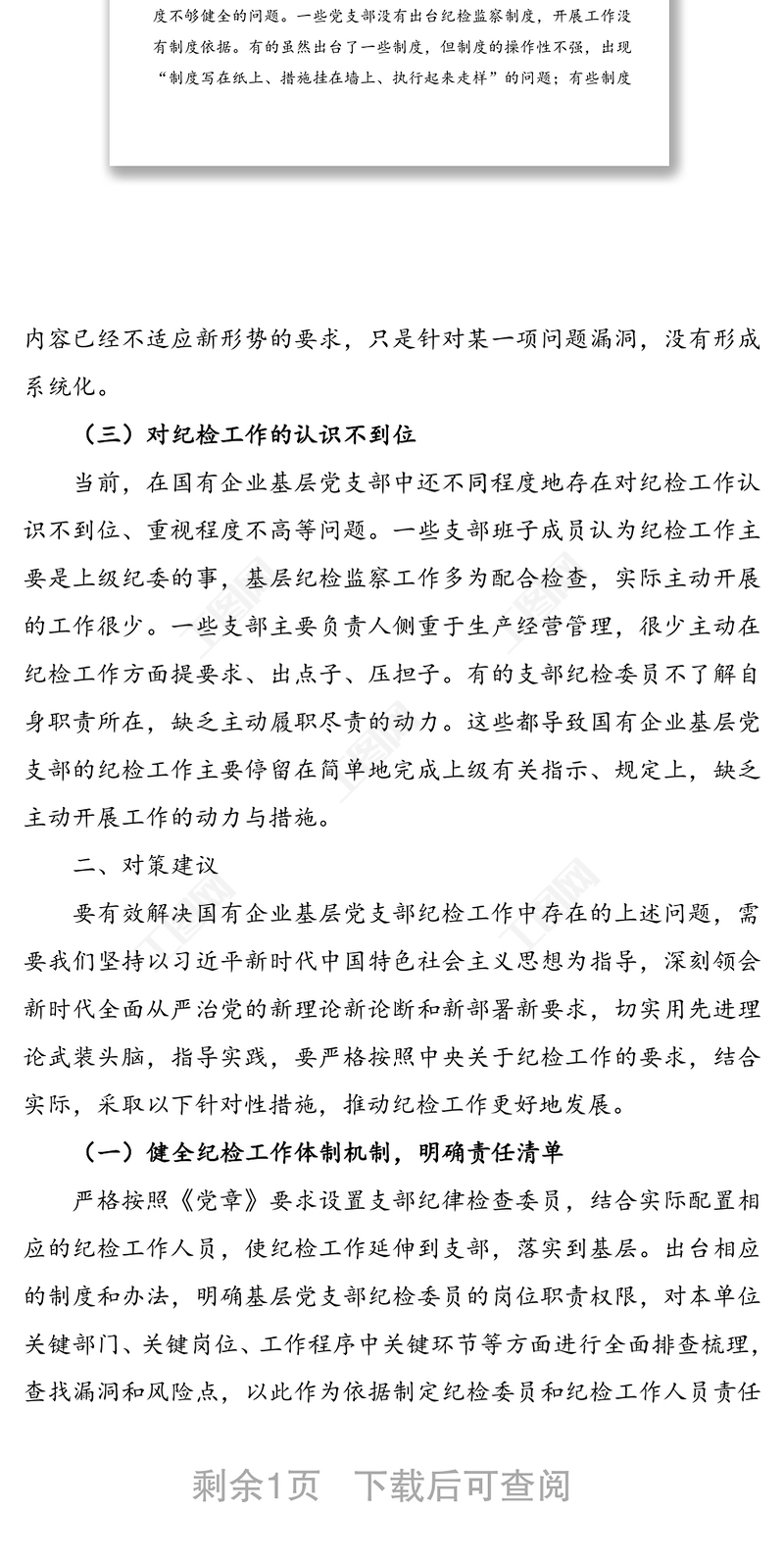 國(guó)有企業(yè)基層紀(jì)檢監(jiān)察工作中的問題及建議(集團(tuán)公司企業(yè)紀(jì)檢監(jiān)察工作總結(jié)匯報(bào)報(bào)告參考),紀(jì)檢監(jiān)察,公文范例,領(lǐng)導(dǎo)述職報(bào)告,機(jī)關(guān)公文寫作 Array
