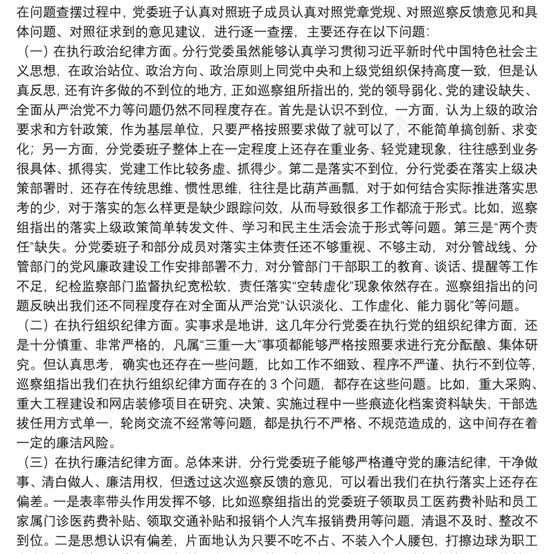 銀行黨委班子巡察整改專題民主生活會對照檢查發(fā)言提綱 Array