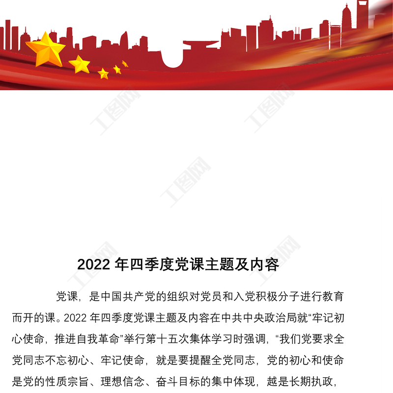 工圖網(wǎng)提供2022年四季度黨課主題及內(nèi)容供會(huì)員免費(fèi)下載。更多精彩黨課PPT素材,盡在工圖網(wǎng)。