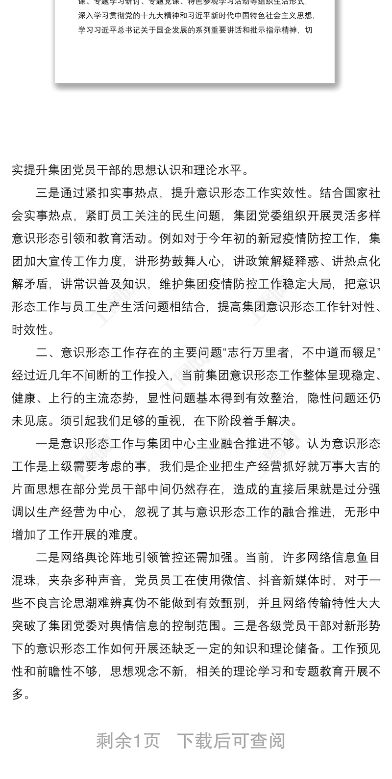 某國企集團(tuán)2020年第一季度意識形態(tài)工作分析研判報(bào)告 Array
