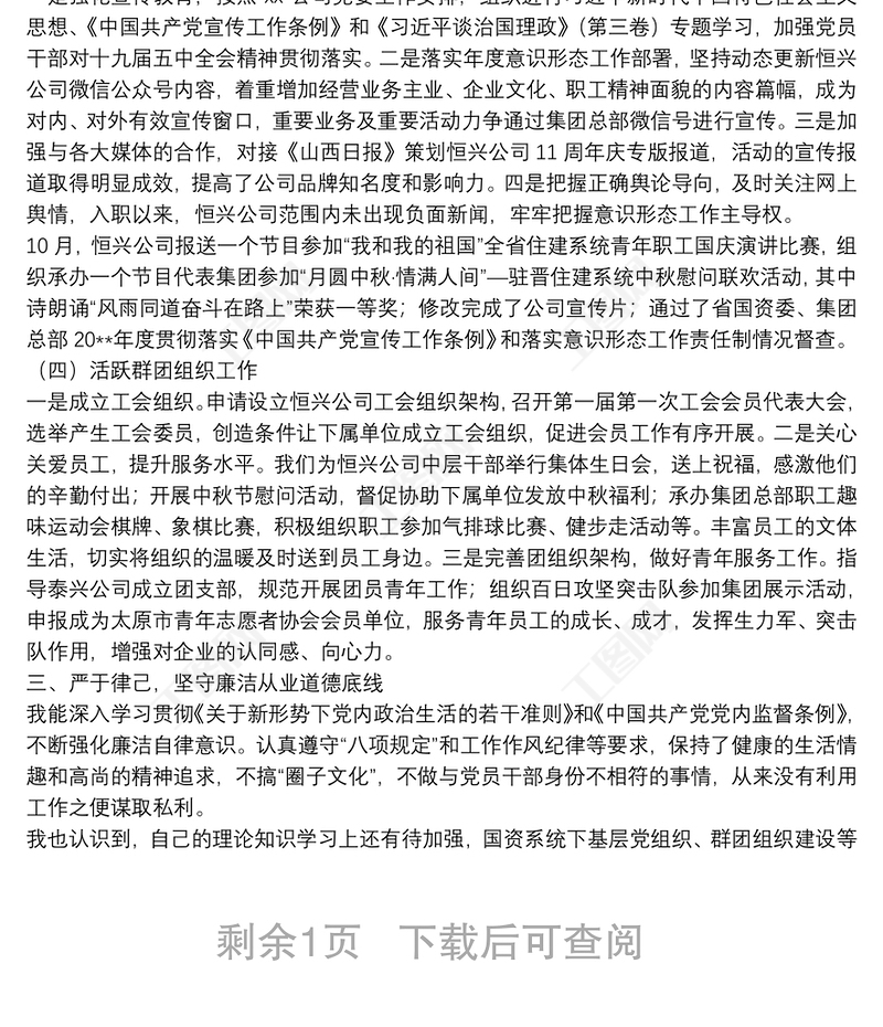 工圖網(wǎng)提供國企干部20**年度個(gè)人述職報(bào)告供會(huì)員免費(fèi)下載。更多精彩黨課PPT素材,盡在工圖網(wǎng)。