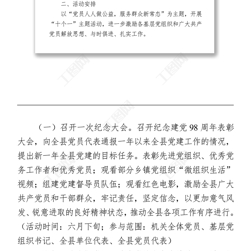 工圖網(wǎng)提供“七一”建黨節(jié)活動方案 供會員免費下載。更多精彩黨課PPT素材,盡在工圖網(wǎng)。