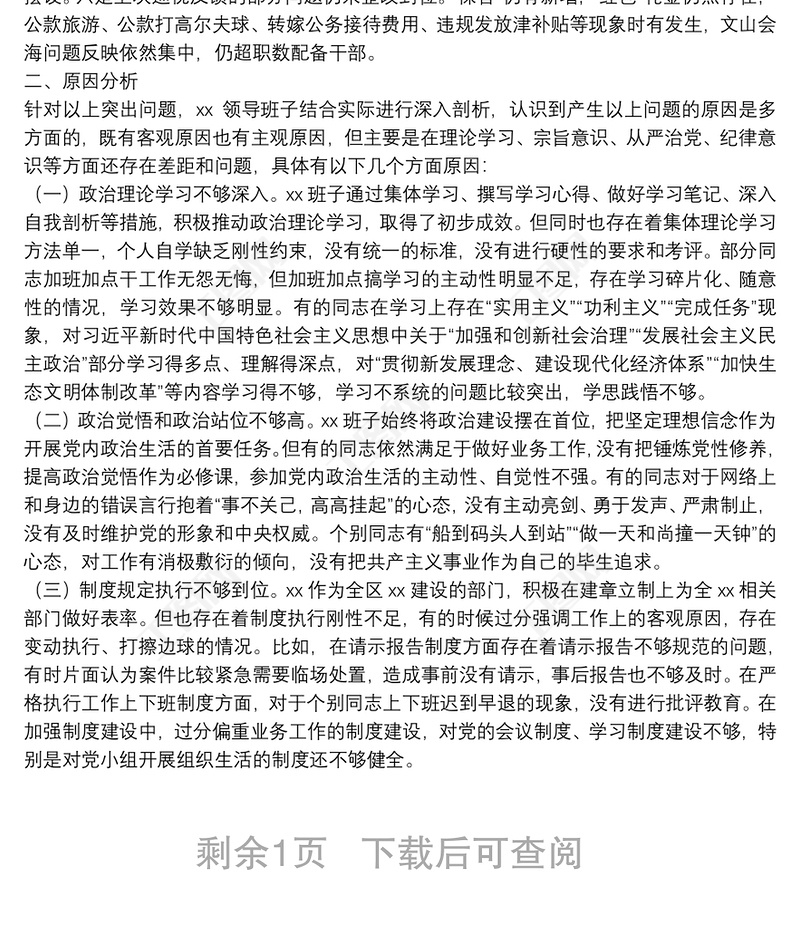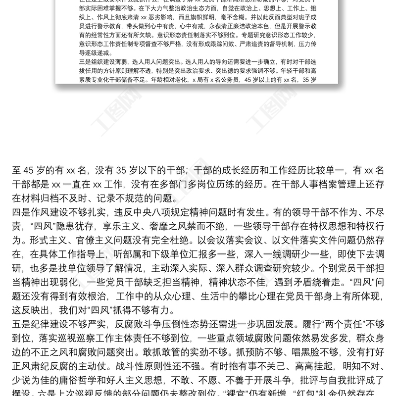 2021黨支部組織生活會(huì)對(duì)照檢查材料篇2022巡察整改專題民主生活會(huì)領(lǐng)導(dǎo)班子對(duì)照檢查材料2022年巡察整改專題民主生活會(huì)對(duì)照檢查材料剖析模板2021黨支部組織生活會(huì)對(duì)照檢查材料和整改方案2021一案一整改專題民主生活會(huì)對(duì)照檢查材料2021衛(wèi)健局組織生活會(huì)對(duì)照檢查材料2021民主生活會(huì)黨支部班子對(duì)照檢查材料2021村黨支部組織生活會(huì)對(duì)照檢查材料2022年度巡察整改專題民主生活會(huì)班子對(duì)照檢查材料2022巡察反饋問題整改專題民主生活會(huì)個(gè)人對(duì)照檢查材料2022縣教育局局長巡察整改專題民主生活會(huì)檢視剖析材料2021組織生活會(huì)對(duì)照檢查材料領(lǐng)導(dǎo)班子2021黨群部長組織生活會(huì)對(duì)照檢查材料2022巡察整改專題民主生活會(huì)黨委書記對(duì)照檢查材料2022巡察整改專題民主生活會(huì)黨組書記個(gè)人對(duì)照檢查材料