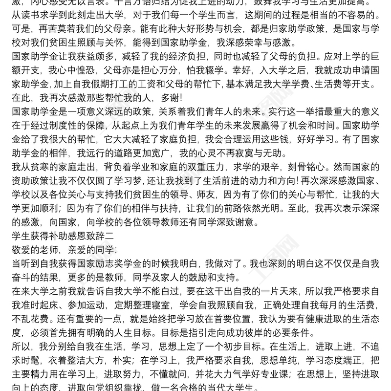 學(xué)生獲得補(bǔ)助感恩致辭 Array