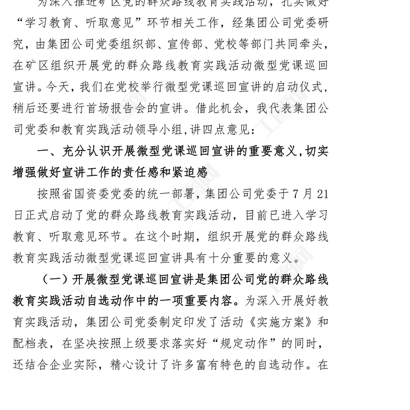 2021在微型黨課巡回宣講啟動儀式上的講話范文集團公司企業(yè)微黨課領(lǐng)導講話包含
