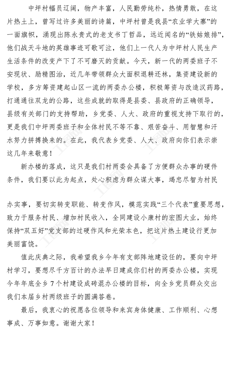 鄉(xiāng)黨委書記在村辦公樓落成慶典上的講話 Array