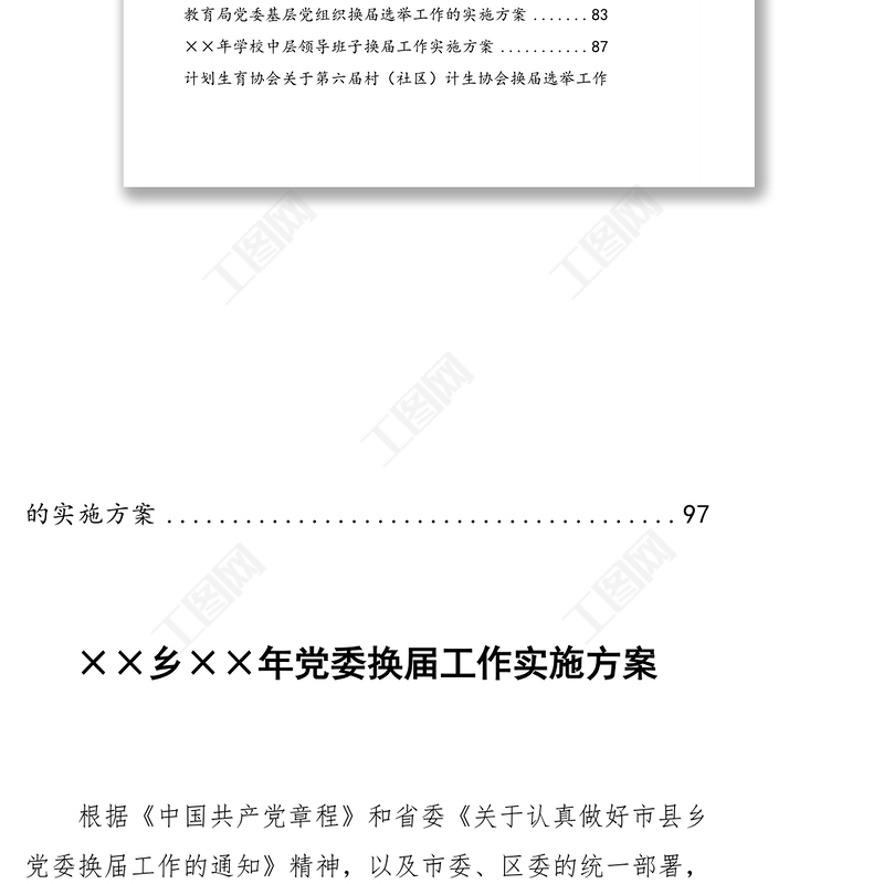 工圖網(wǎng)提供基層黨組織換屆工作實(shí)施方案匯編文供會(huì)員免費(fèi)下載。更多精彩黨課PPT素材,盡在工圖網(wǎng)。