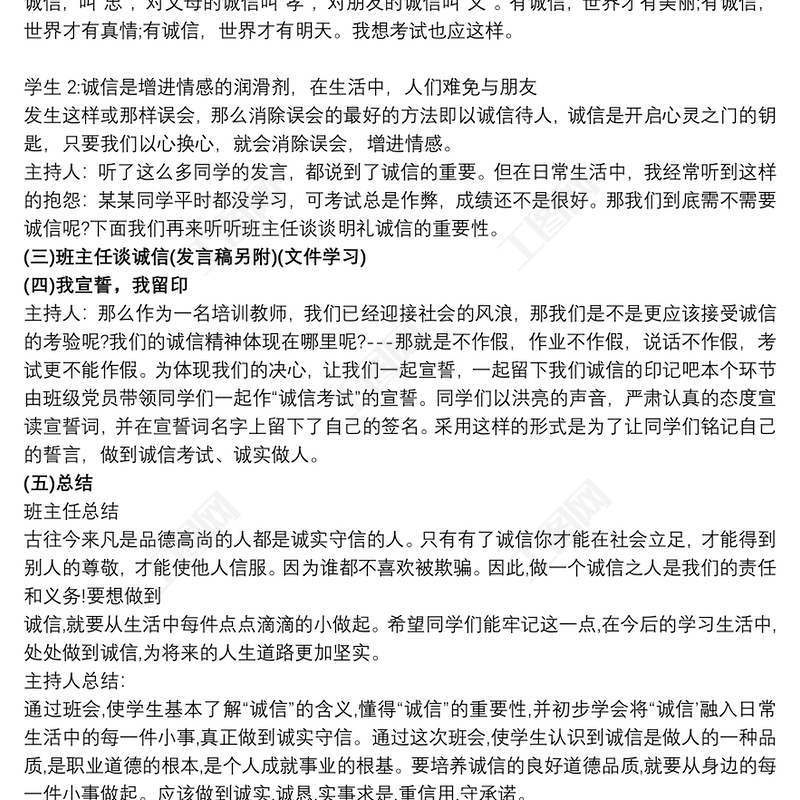 誠信考試主題班會活動策劃書誠信考試主題班會活動策劃 Array