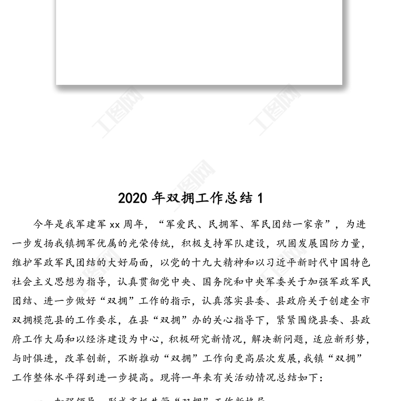 工圖網(wǎng)提供2020年雙擁工作總結(jié)匯編(5篇)供會(huì)員免費(fèi)下載。更多精彩黨課PPT素材,盡在工圖網(wǎng)。
