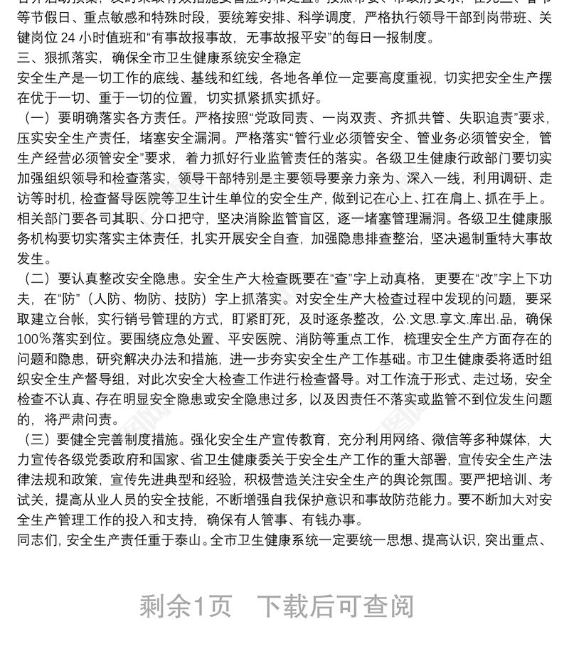 在全市衛(wèi)生健康系統(tǒng)安全生產(chǎn)會議上的講話