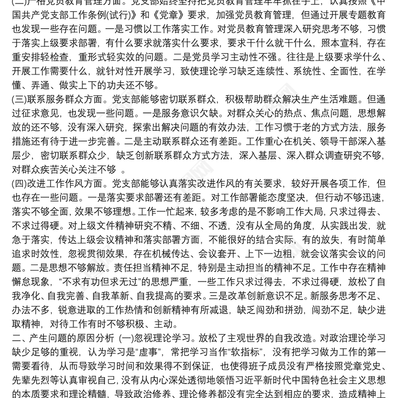 基層黨支部班子專題教育組織生活會(huì)4個(gè)方面檢視剖析材料