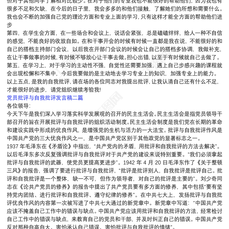 黨員批評與自我批評發(fā)言稿簡短_黨員批評與自我批評發(fā)言稿三篇