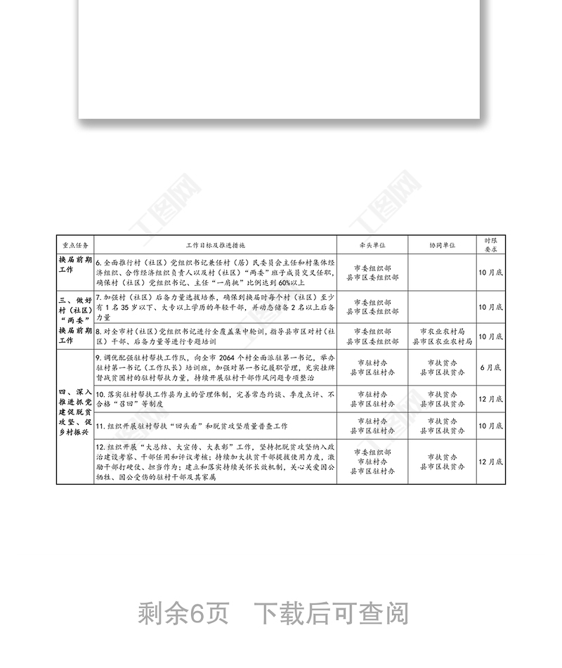 鄉(xiāng)鎮(zhèn)2022新時代文明實踐站建設(shè)重點任務(wù)清單2022理清意識形態(tài)工作重點任務(wù)清單2022公司關(guān)于推進(jìn)基層黨建三基本建設(shè)與三基工作有機(jī)融合的實施方案2021基層黨建工作任務(wù)清單2022基層黨建工作責(zé)任清單民政局2022紀(jì)委巡查整改任務(wù)清單2021黨員抓黨的政治建設(shè)任務(wù)清單2022年幼兒園全面從嚴(yán)治黨任務(wù)清單2023黨內(nèi)主題教育任務(wù)清單2023中交基層黨建標(biāo)桿創(chuàng)建總結(jié)2023創(chuàng)建基層黨建特色品牌計劃2023基層黨建重點工作總結(jié)2023主題教育十項任務(wù)清單心得2023從嚴(yán)治黨主要措施任務(wù)清單2023中學(xué)從嚴(yán)治黨任務(wù)清單表