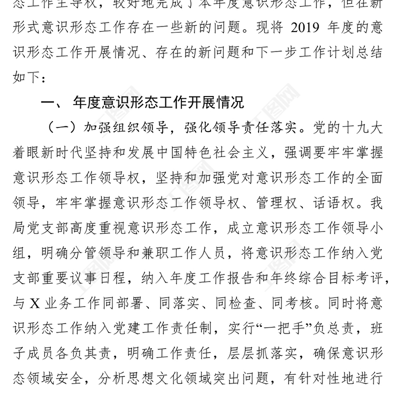 2019年度意識(shí)形態(tài)工作總結(jié)(二),意識(shí)形態(tài)工作,公文范例,領(lǐng)導(dǎo)述職報(bào)告,機(jī)關(guān)公文寫作 Array